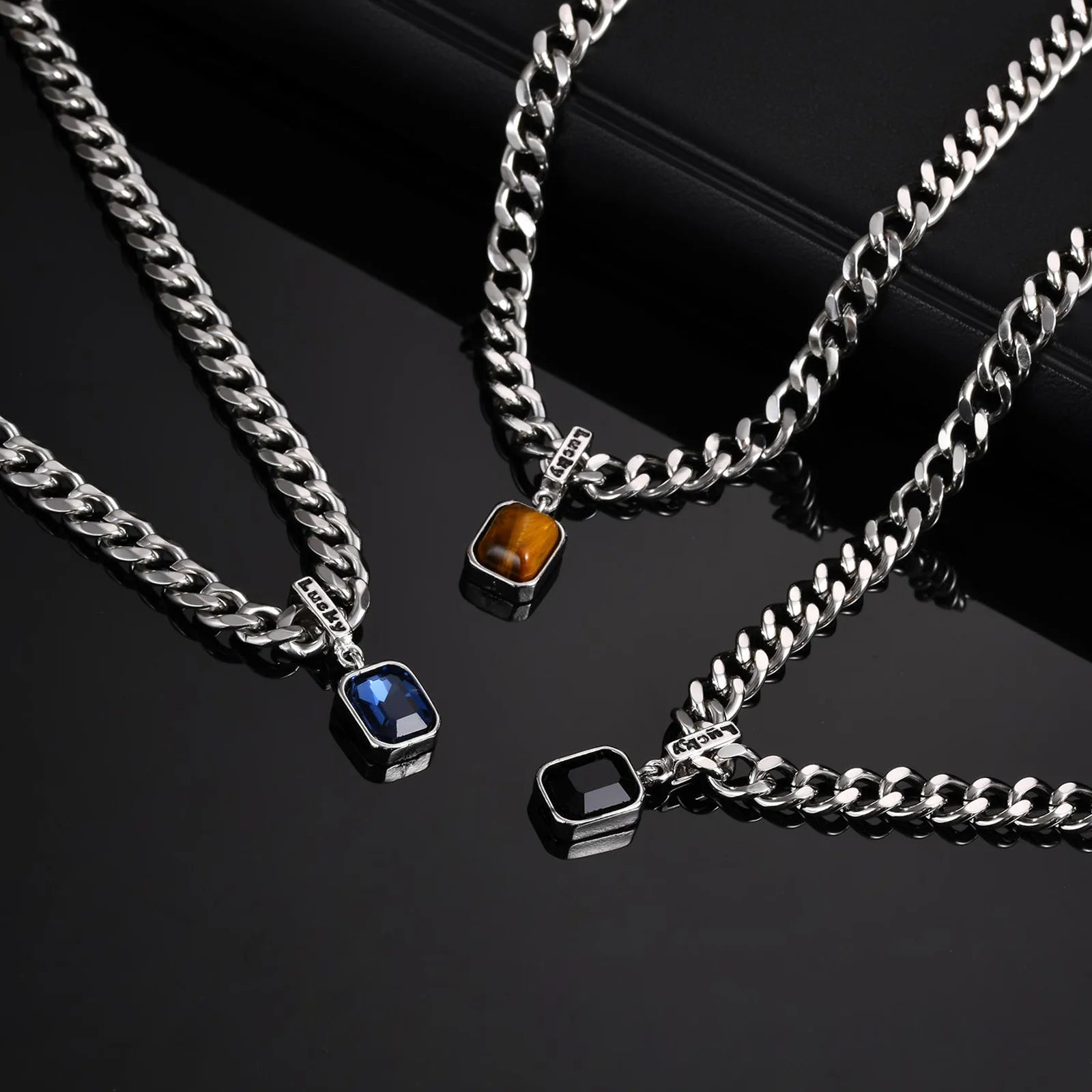 A striking stainless steel necklace featuring a radiant zircon gemstone pendant. Designed to elevate both casual and formal looks with modern sophistication.