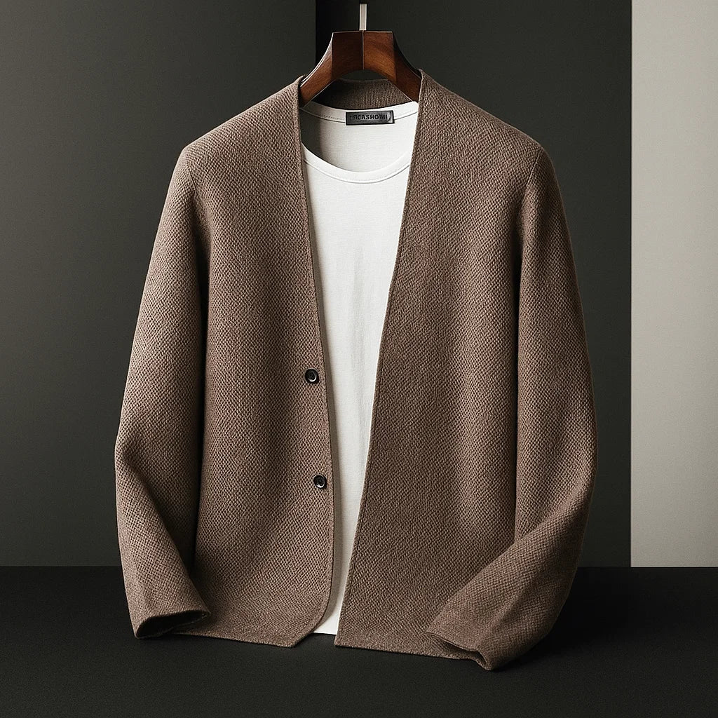 A refined merino wool cardigan designed for timeless elegance and comfort. Soft, lightweight, and perfect for autumn and winter layering.